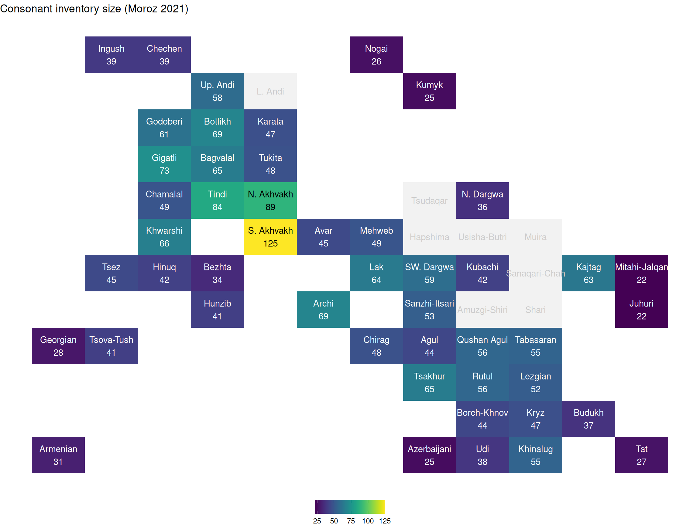 install.packages("RCaucTile")RCaucTile: Tile Grid Maps for East Caucasian Languages