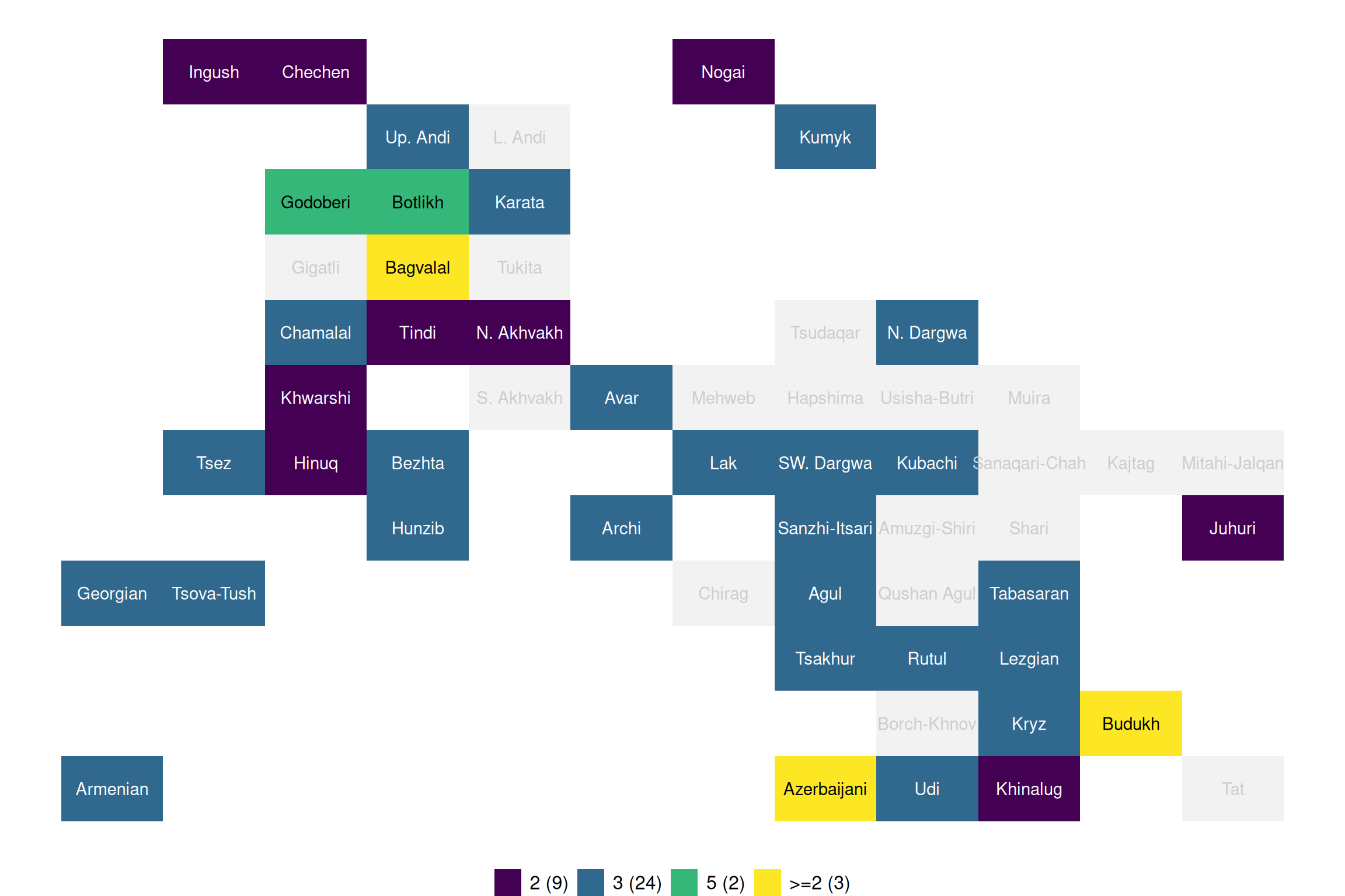Khalilova, Zaira (2009). “A grammar of Khwarshi”.