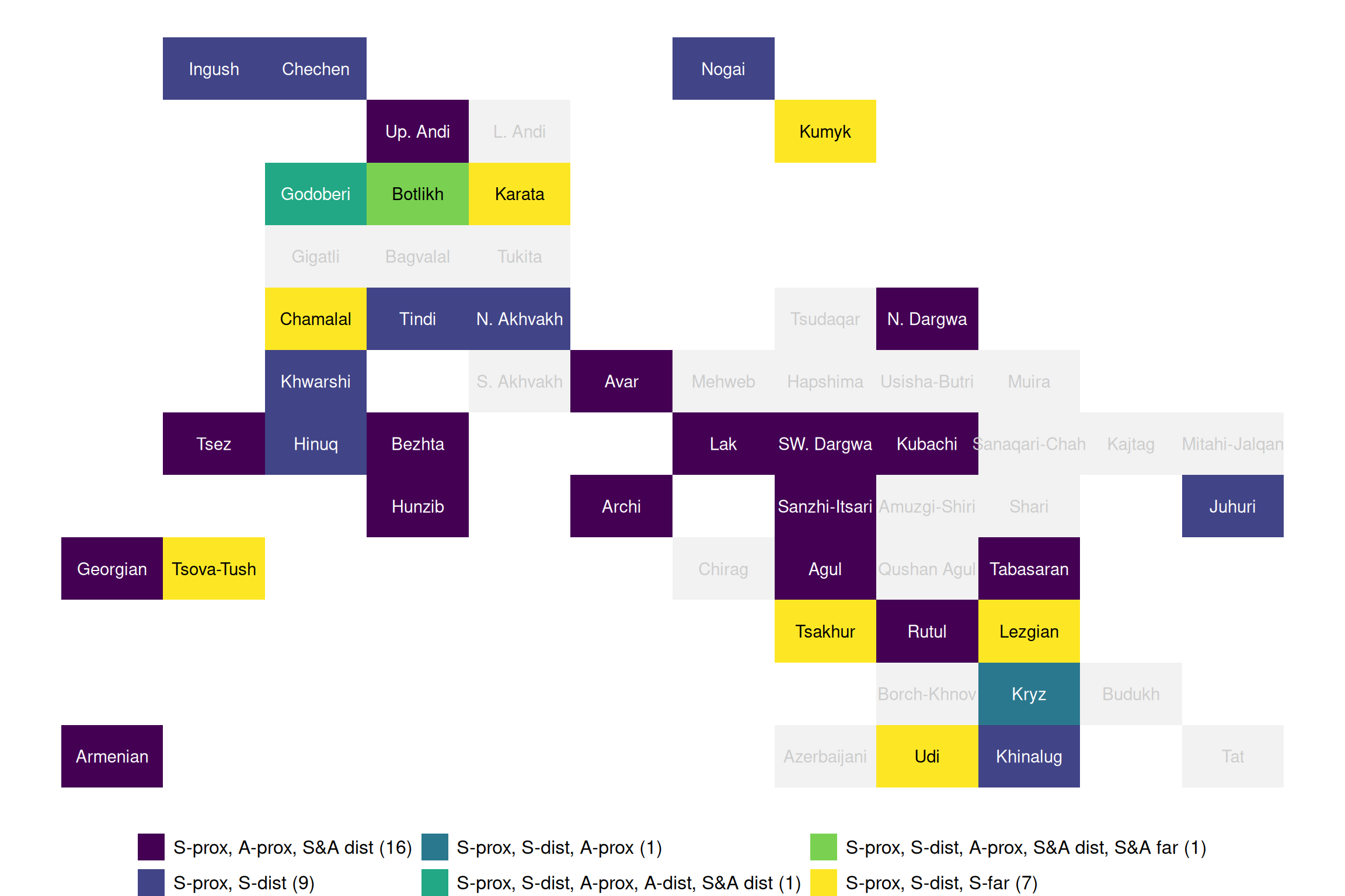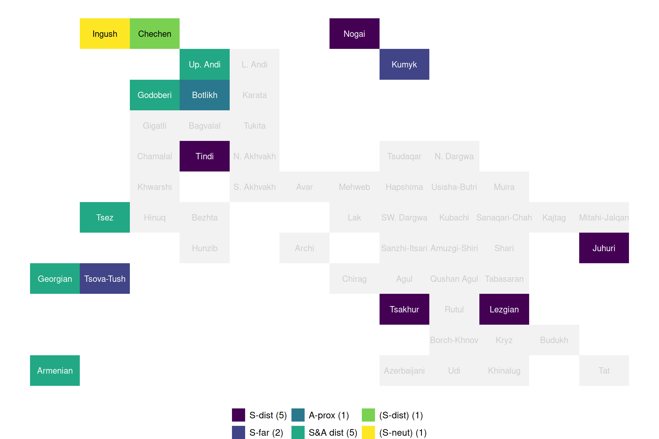 Mukhin, Timofey (2023). “Demonstratives (Maps & Data)”. In: Typological Atlas of the Languages of Daghestan (TALD), v 2.0.1. Ed. by George Moroz, Michael Daniel, Konstantin Filatov, Timur Maisak, Timofey Mukhin, Irina Politova, Elena Shvedova, Samira Verhees and Chiara Naccarato. Moscow: Linguistic Convergence Laboratory, HSE University. DOI: 10.5281/zenodo.6807070. https://lingconlab.ru/tald.